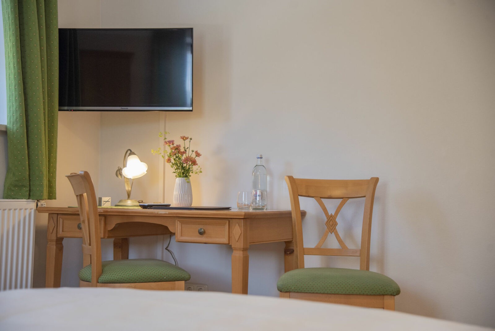 - komfortabler Arbeitsplatz und Flachbild-TV