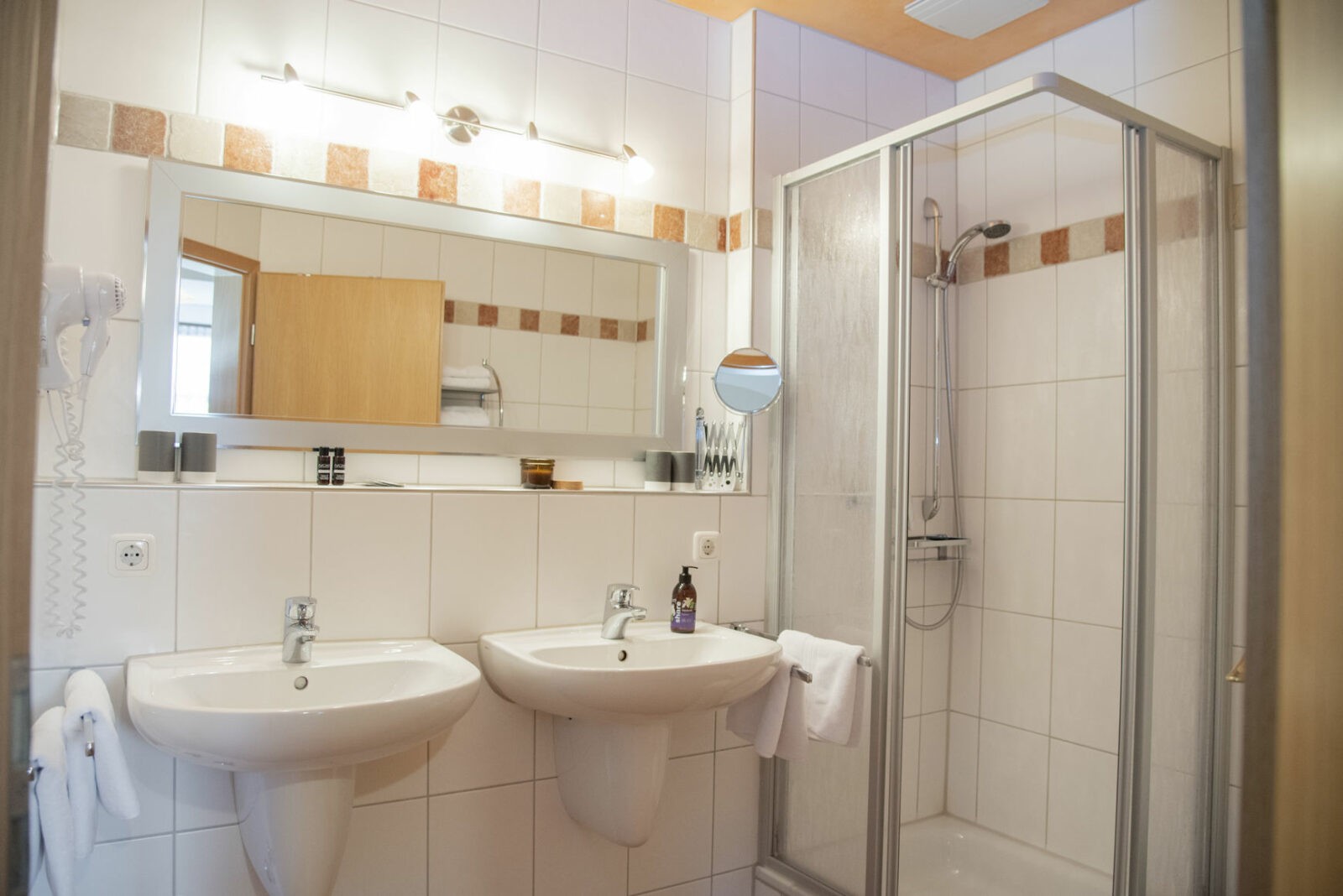 Unsere zwei Familienzimmer mit Blick zur Naab sind perfekt für Familien mit Kindern oder für Freunde oder für alle die etwas mehr Platz benötigen. Sie haben die Wahl zwischen einem Familienzimmer mit zwei Doppelbetten oder einem Zimmer mit Doppelbett und separater Schlafnische mit Einzelbetten.